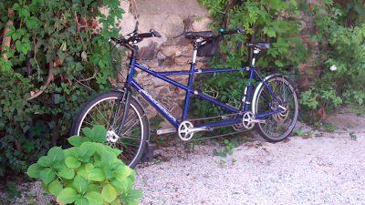 It’s always worth spending a lot of time on the planning of a trip like this, and it is of course an enjoyable process in itself. The technology has improved massively since our LEJOG in 2008, and we were able to look at much of our route in advance on Google StreetView to check how much traffic there might be on a given road. D-roads in France seem to vary hugely between lovely quiet single-track roads to busy dual carriageways, so it was very useful to be able to see them in advance. Gary the Garmin was also much improved – now having a ‘don’t recalculate’ option which meant that if we strayed off route he was not inclined to calculate a silly detour as he had repeatedly on our LEJOG trip. We tended to book accommodation online for a couple of days ahead, and although for some people that might be too ‘last minute’, we do like the flexibility. It also meant that we were able to re-route easily when we wanted to, after spending time on getting repairs to the tandem done, or where we wanted to go more slowly in the July heat. We also like the varied mileages (kilometrages?) we’d planned, some days more than 60 miles, others just over 40 miles. During the planning process that was just how it worked out in order to overnight in places in which we wanted to stary, but in practice it was good to have that variation – a good challenge on longer days, and an opportunity for a longer rest or some local sight-seeing on shorter days.